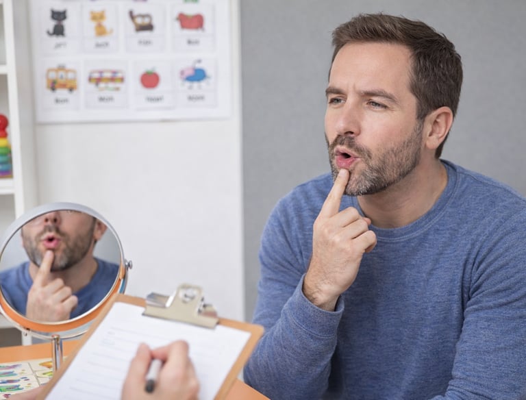 Podpora pri poruchách reči a hlasu u dospelých klientov.